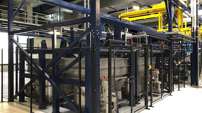 Bei Bedarf auch mit integrierten Ofenanlagen (z. B. zur Wasserstoffentsprödung oder zur Trocknung von Teilen mit hohen Anforderungen an die Beschichtungsqualität) und mit integrierten, automatischen Korbwaschanlagen.